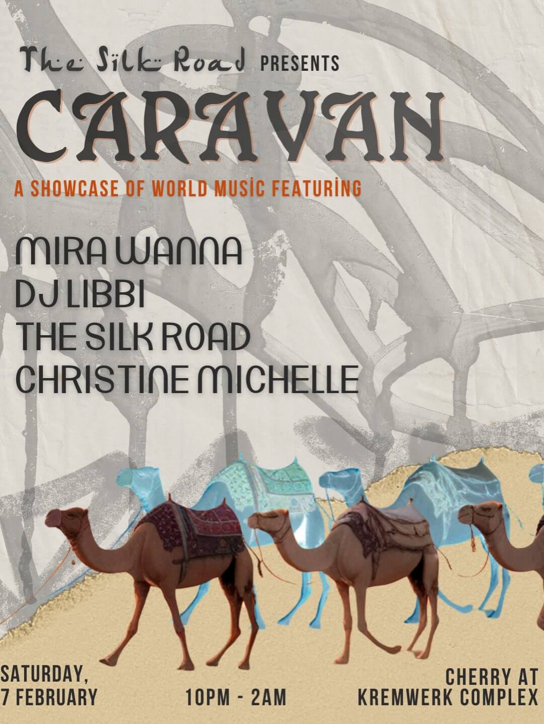 CARAVAN is inspired by the true-life historic Silk Road that wound its way through Europe, Asia, and Africa. Along this route, there was a mingling of cultures and backgrounds that provided a platform for them to interact, come together, and contribute to a newly created global market. We have the same vision to create a global connection, this time through music. World music is genre-fluid & promotes inclusivity, accessibility, and overall respect for one another. You don’t need to know the instruments or the language to understand its meaning and appreciate its beauty. This appreciation sparks cultural curiosity and investigation. It’s a concept that brings us all together, and it’s a dream we want everyone to feel included in. What will you hear at a CARAVAN night? This show is an open-format show where each DJ can play any genre of music they’d like. There’s only one rule: they must incorporate instruments, languages, and sounds from around the world throughout their set. This creates the feeling of traveling through the world together as one caravan of people.
