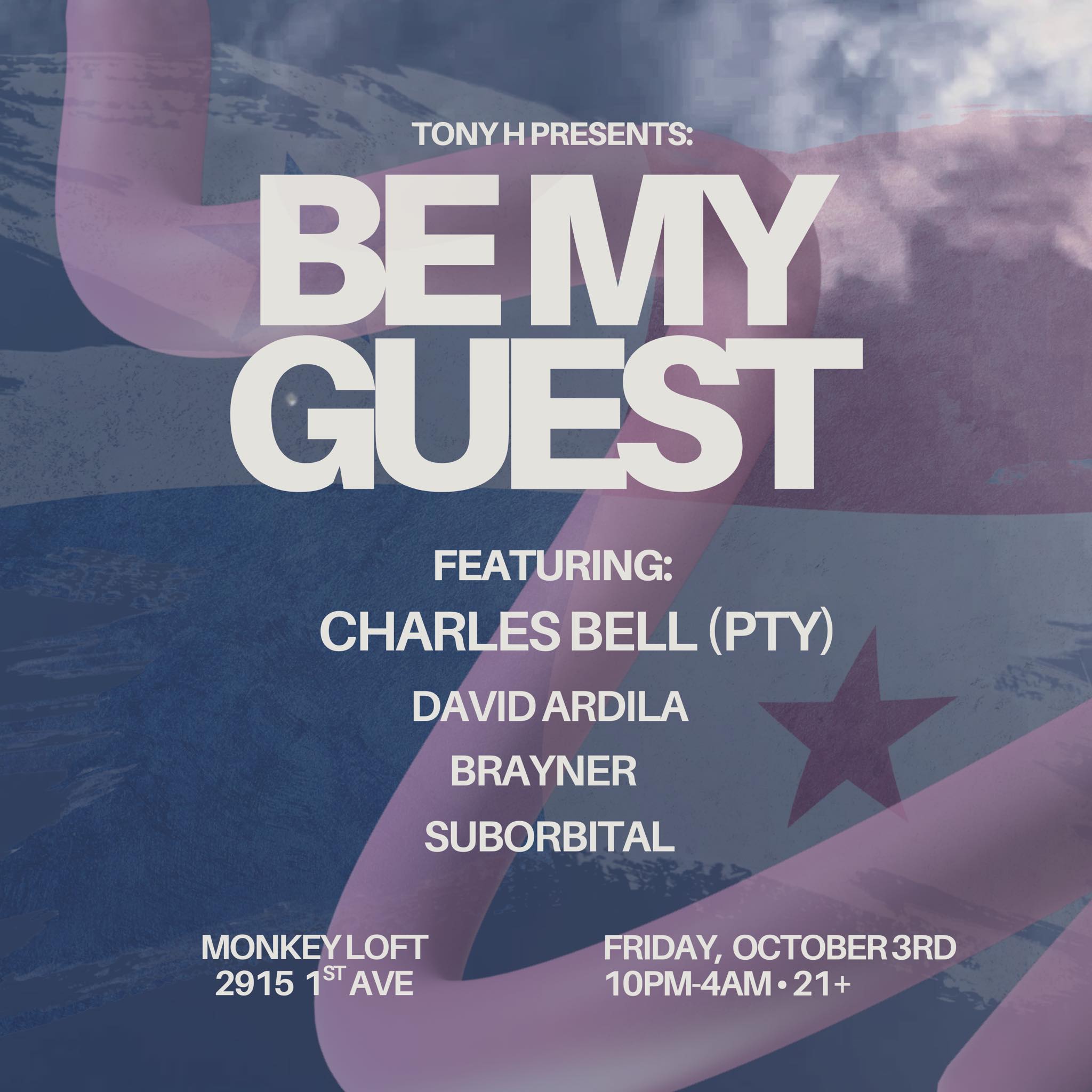 Tony H presents BE MY GUEST: AN EVENT THAT IS TO BRING FRESH FACES BEHIND THE DECKS AND TO COLLABORATE WITH DJS, DANCERS AND STAFF TO PROMOTE A SAFE SPACE. CONSENT IS KEY.