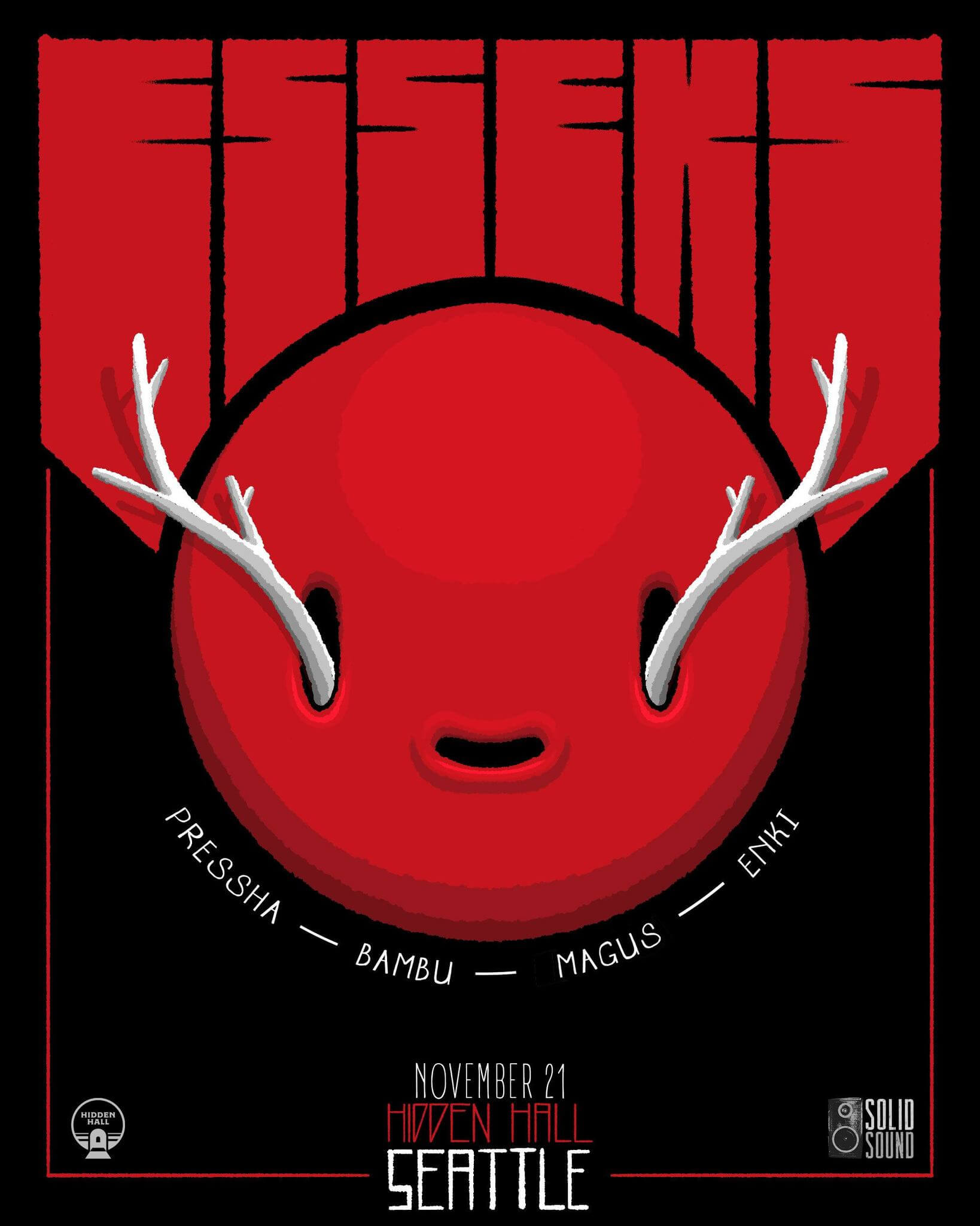 Esseks: Esseks (Sam Eckstein) is a Brooklyn-based producer and visual artist. His music ranges from all the bass-centric genres with a focus on the off-kilter. The diverse elements of his music are tied together with Esseks’ subtly dark but playful sound and visual aesthetic. He has built an extensive catalog of music since his first release in 2012 across various labels, including Wakaan, Subcarbon, Saturate, and most recently Deadbeats. His music is accompanied by visual work that is a key component to his vision, whether illustration, animation, or design. All of the artwork, merchandise, and visual content on stage are illustrated and designed by Esseks himself.