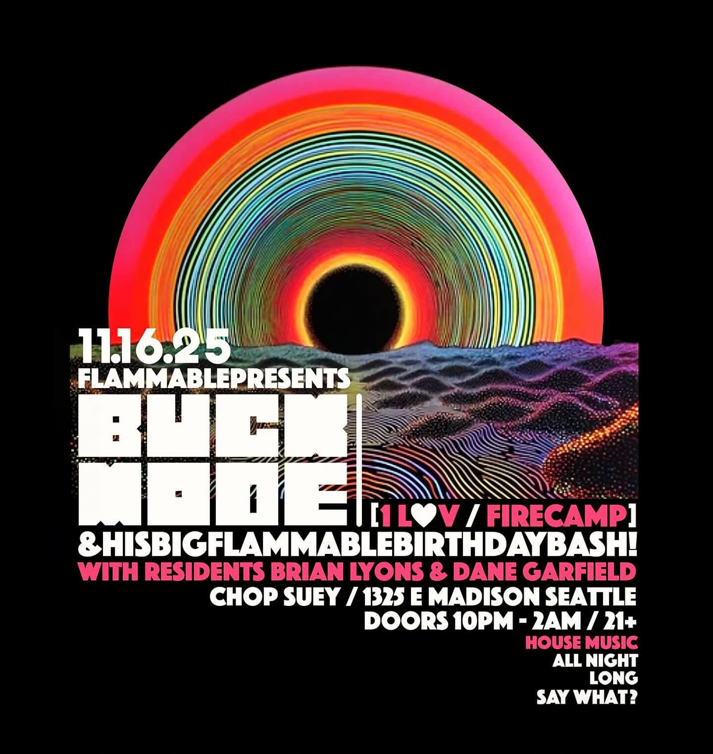 This Sunday at Flammable! Local fave Brennan “Buckmode” Buckmaster is back under the red light & serving up da REAL for his bday Flamm… Lyons & Garfield on warmups!