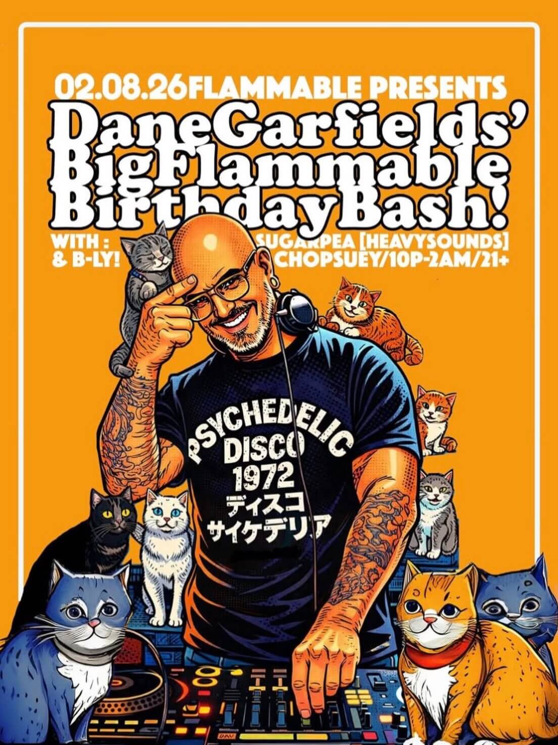 FlammablePresents: DaneGarfield’sBigFlammableBirthdayBash! w/DaneGarfield & B-Ly & Feat. SUGARPEA!!! It’s THEE DaneGarfields BigFlammableBirthdayBash coming up on Sunday February the 8th… so get your Monday affairs in order!