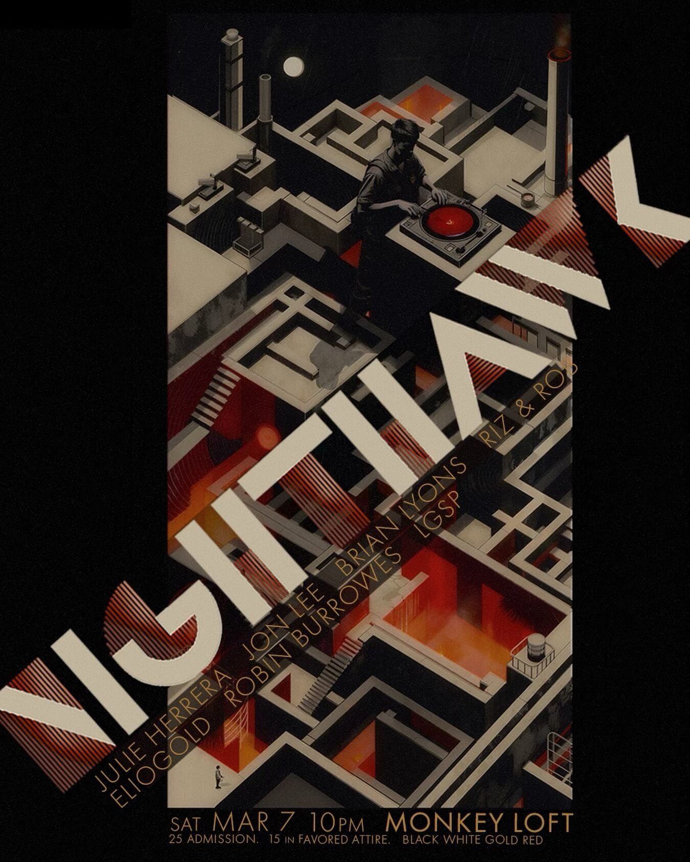 Our assembly has shown promise. And so Nighthawk returns. No advance admission. Entry taken exclusively at the door. It opens again with restraint and polish. Deep house sets with intention and advancing by degrees: warmer, more charged, more corporeal as the hours lengthen. By afterhours, the chamber stands fully heated -euphoric, unguarded and slick with exertion. In this entry the second room turns to the heat of the disco era: Underground > Classics > Italo. Music forged in long shifts and late whistles. The sound of those who labored by day and would not surrender the night. From furnace to inferno.
