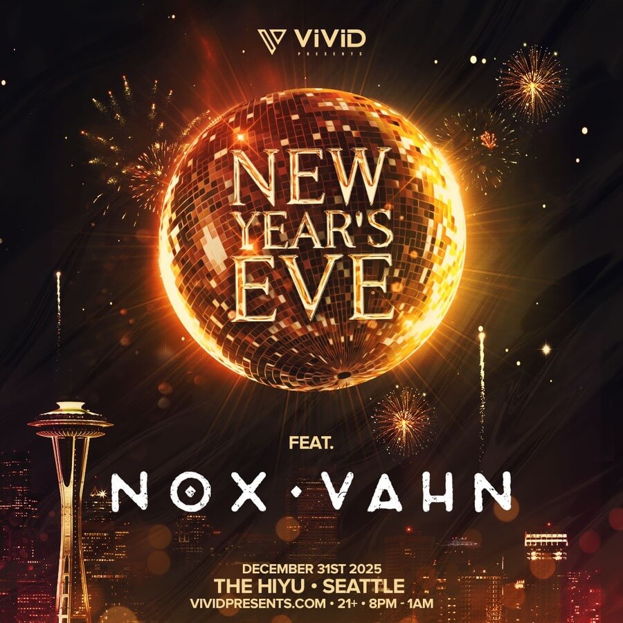ViViD presents New Year’s Eve on The Hiyu: Seattle’s most exclusive NYE party is back — on the water. Sail into 2026 aboard The Hiyu, take in panoramic Space Needle fireworks, and dance the night away to the dark, emotive sound of NOX VAHN. Midnight champagne toast included.