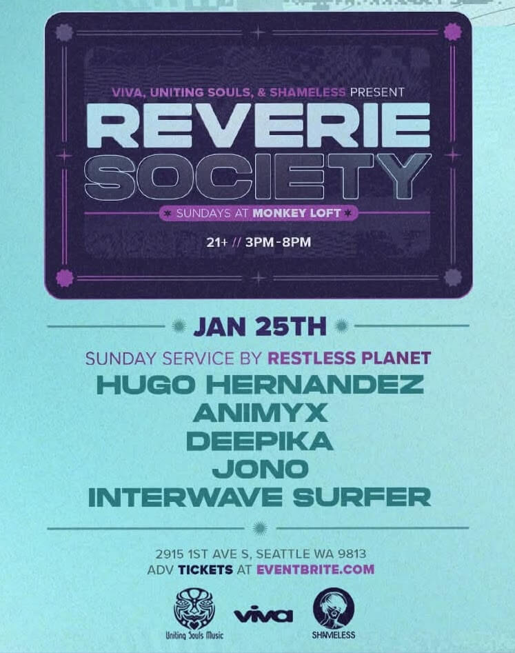 Reverie Society presents Sunday Service by Restless Planet at Monkey Loft. A mid-winter Sunday session focused on deep house, thoughtful pacing, and good company. This one’s about easing into the afternoon and letting the music do its thing. Featuring the Restless Planet crew alongside friends from Viva, Uniting Souls, and Shameless.