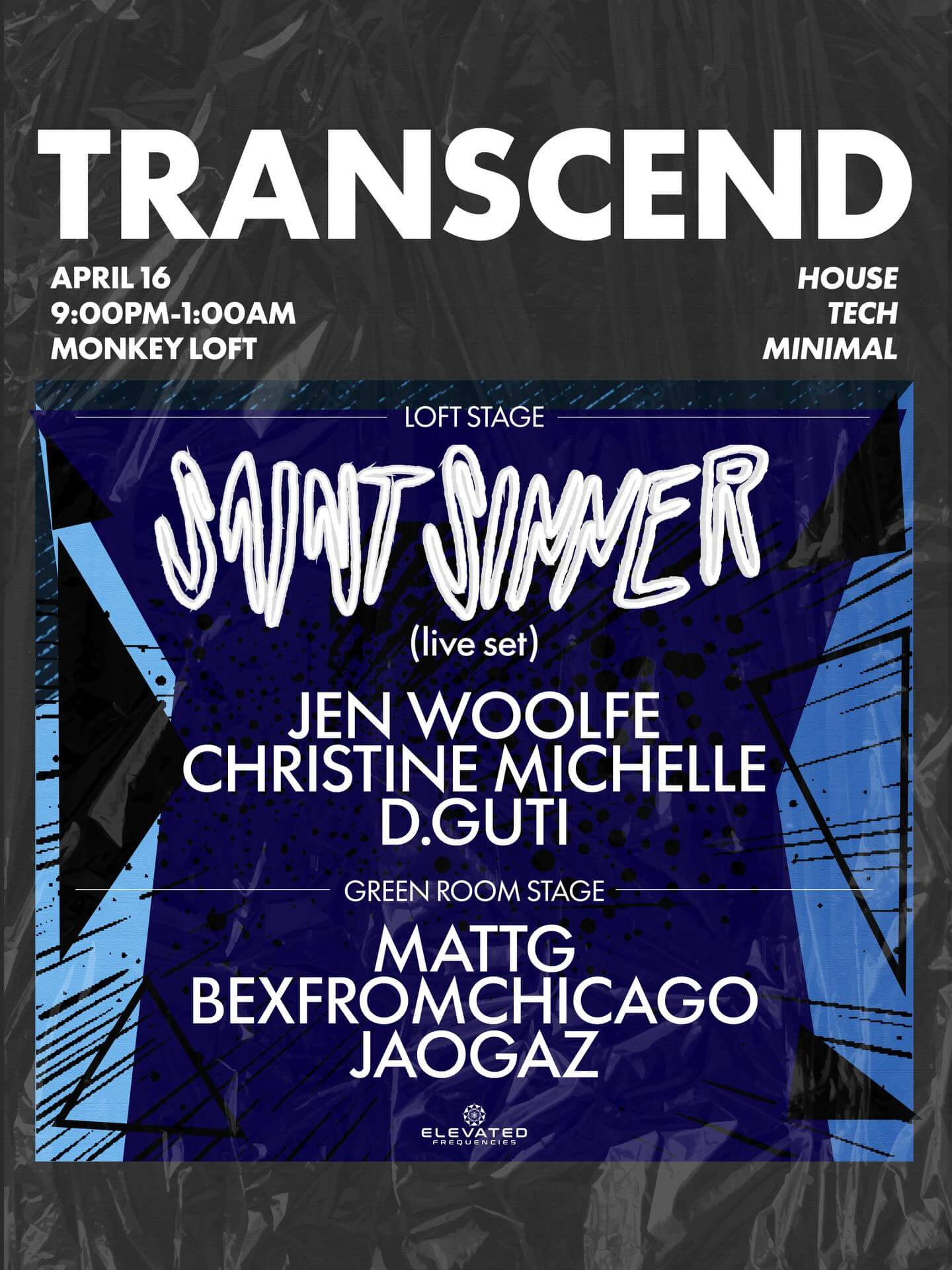 Elevated Frequencies presents Transcend: Catch Elevated Frequencies TRANSCEND at Monkey Loft ft. grammy nominee Saint Sinner for a live performance on his new album + two stacked stages from 9-1 w/guest support by Jen Woolfe, MattG, Bex From Chicago and Elevated Residents D.Guti, Jaogaz and Christine Michelle.
