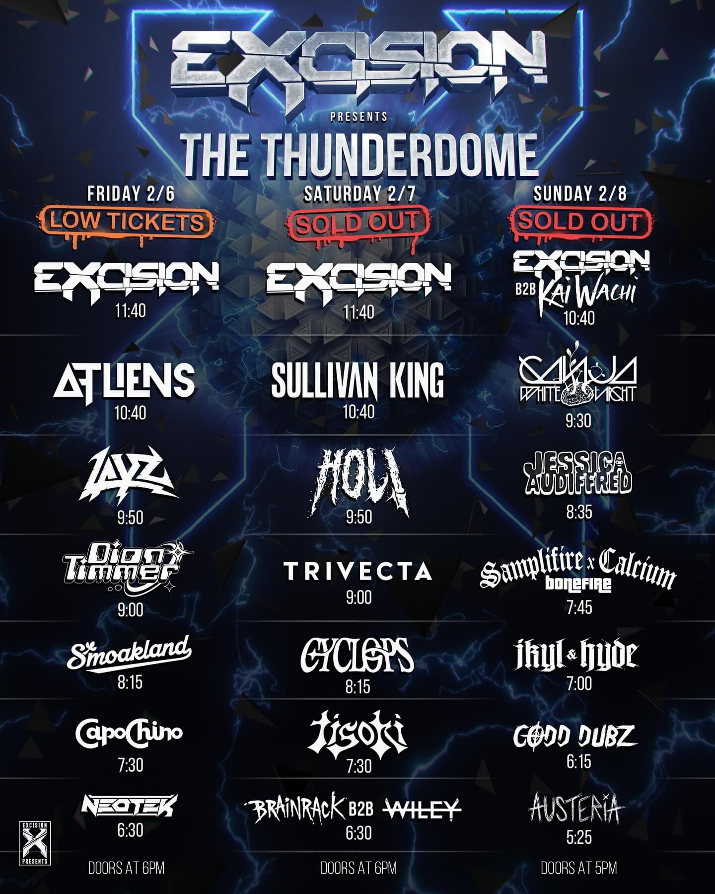 Excision is back with 3 nights of non-stop bass at The Thunderdome this February 6 + 7 + 8! 3-day passes and single day tickets are on sale now. Thunderdome is always one of our biggest shows of the year, and we can’t wait to show you all what we have planned for 2026! You won’t want to miss this heavy lineup at the Tacoma Dome in Tacoma, Washington. -Excision
